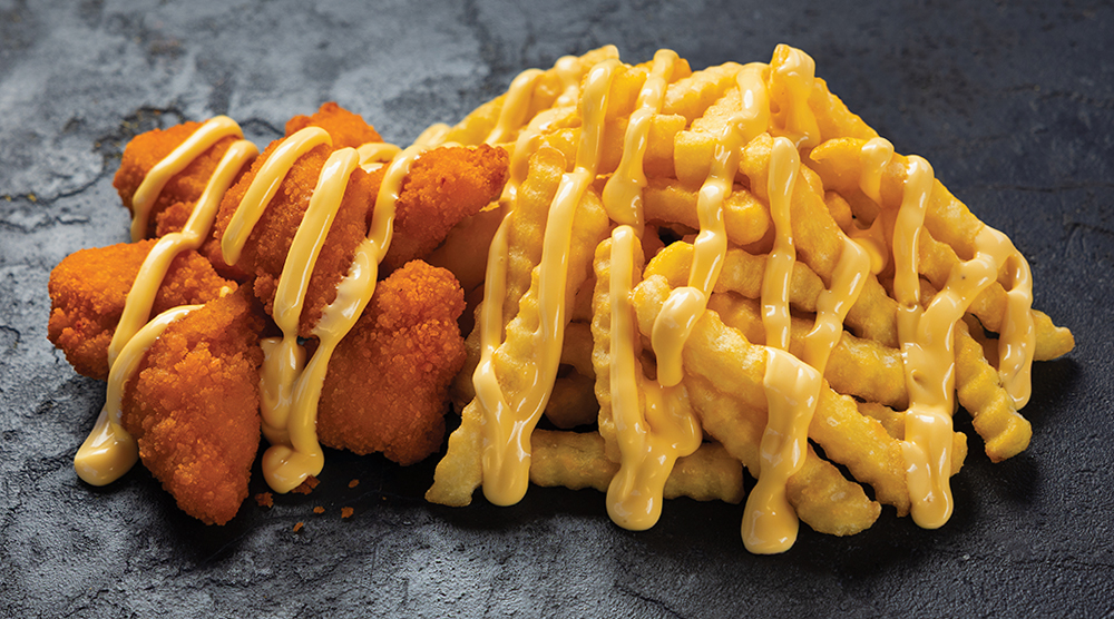 Λουκάνικα με gouda, chicken nuggets, fingers ή strips, μοναδικά συνδυασμένα με τηγανητές πατάτες crispy crinkle-cut και απολαυστικές σως!